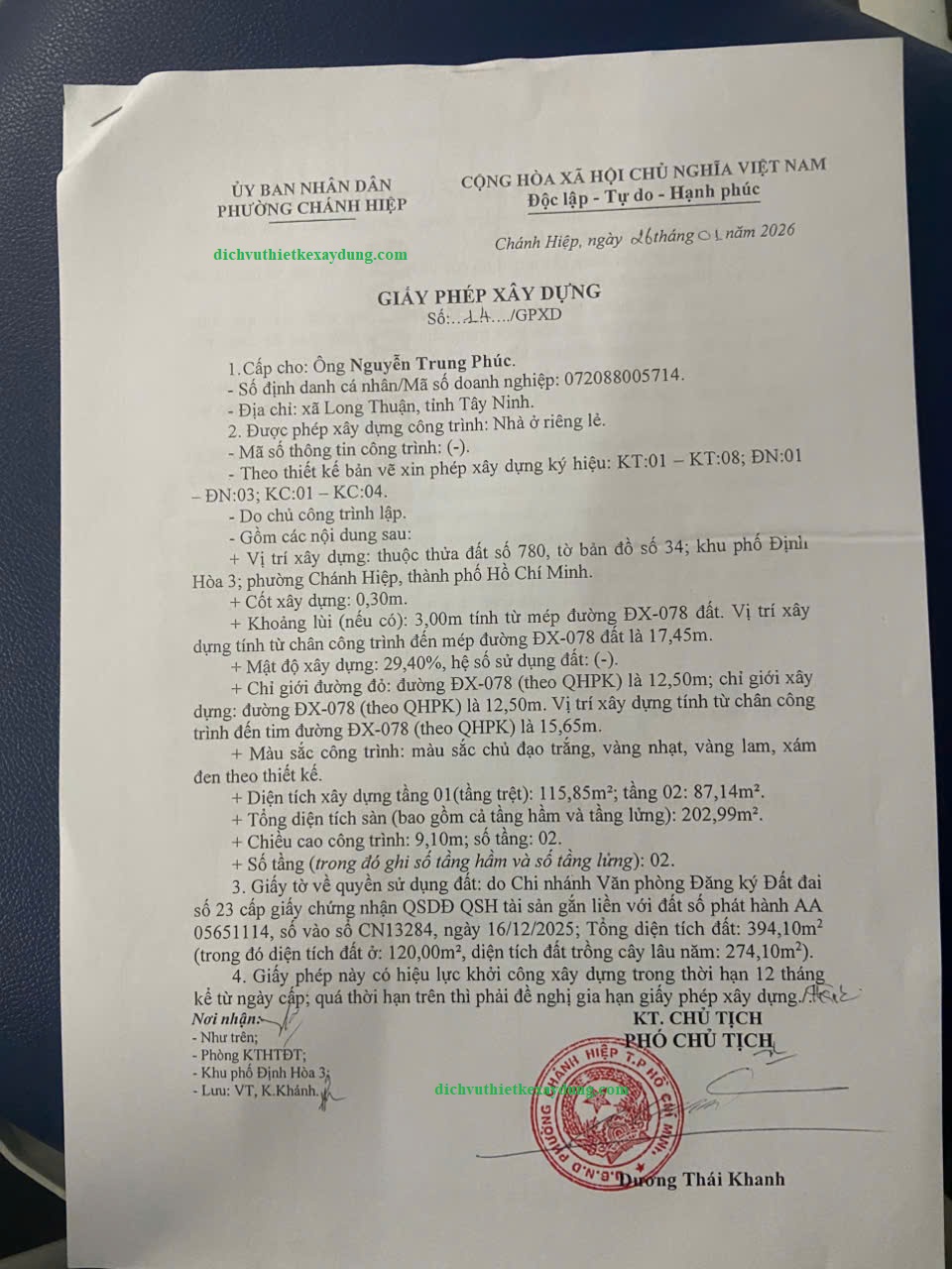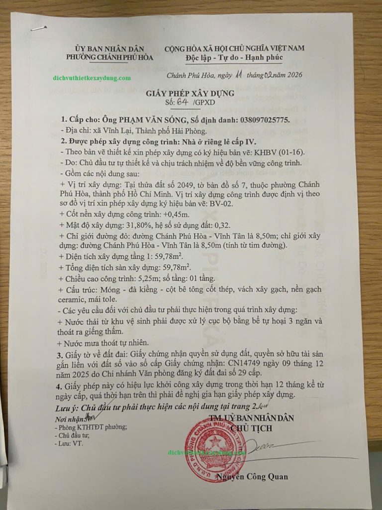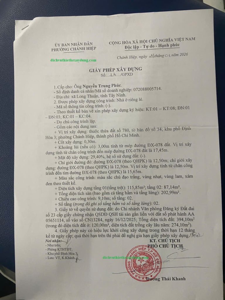 Dịch vụ xin giấy phép xây dựng trọn gói tại phường Chánh Phú Hòa