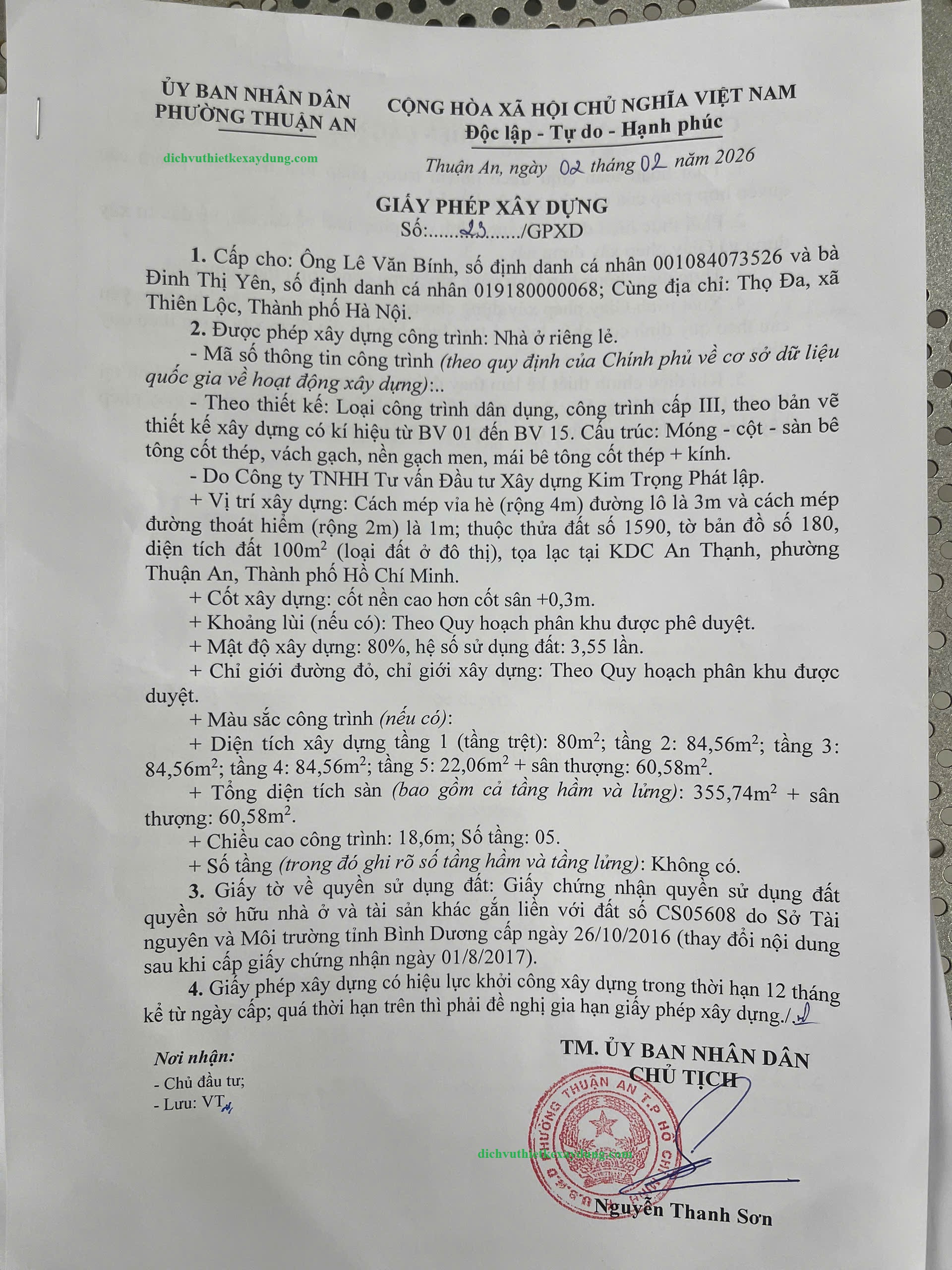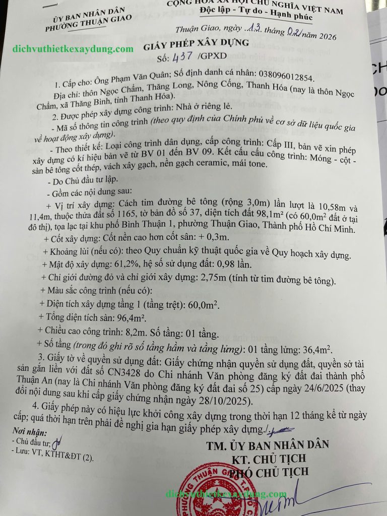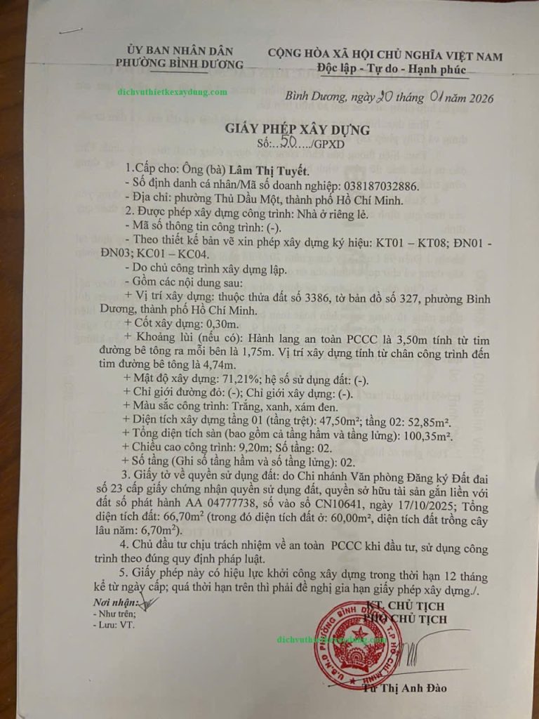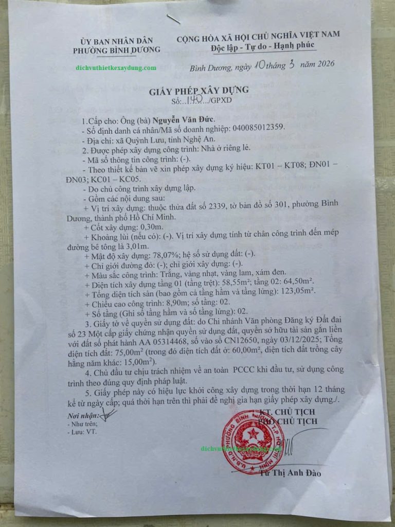 Dịch vụ xin giấy phép xây dựng trọn gói tại phường Bình Dương