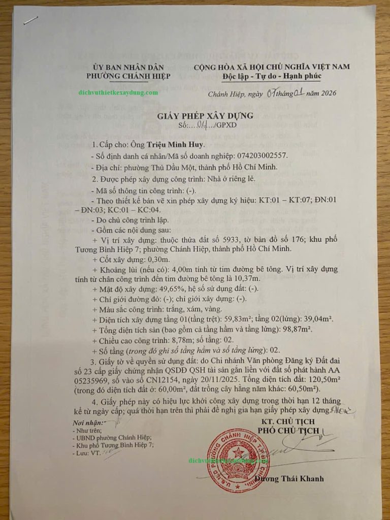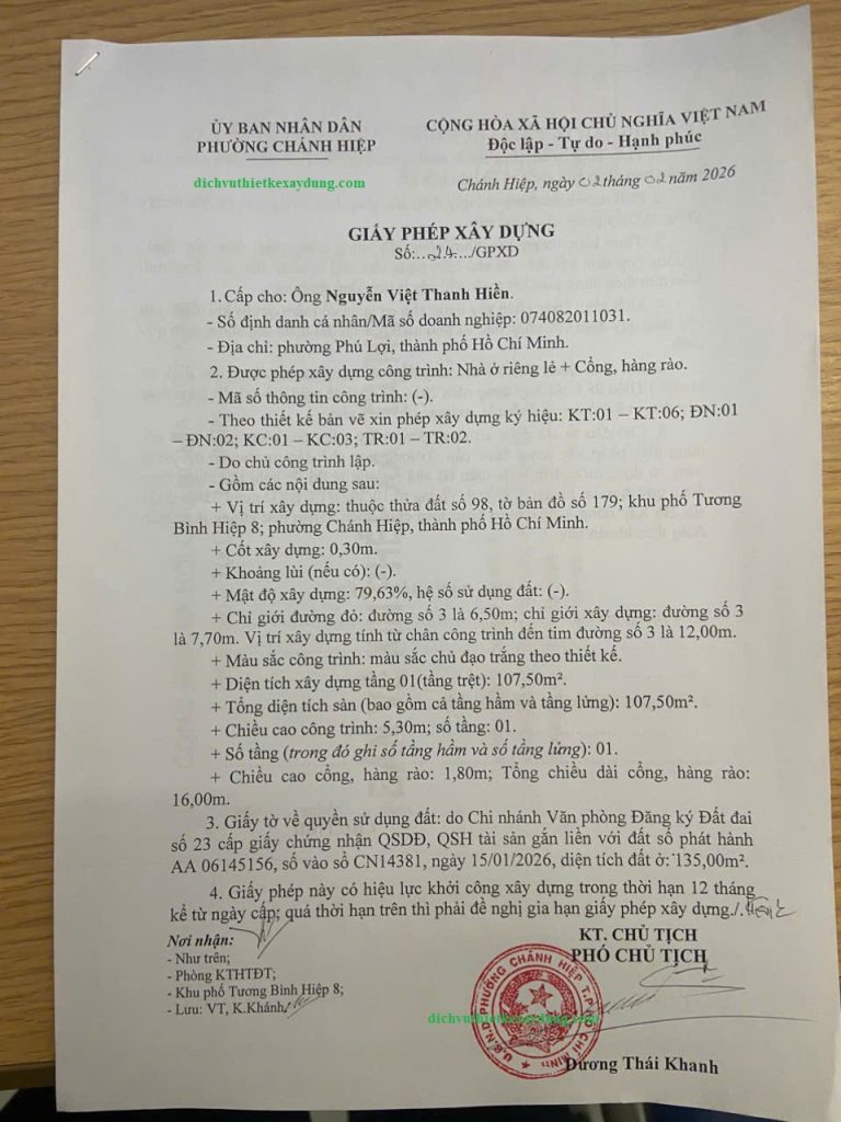 Dịch vụ xin giấy phép xây dựng trọn gói tại phường Chánh Hiệp