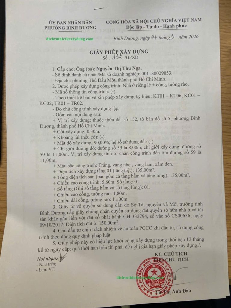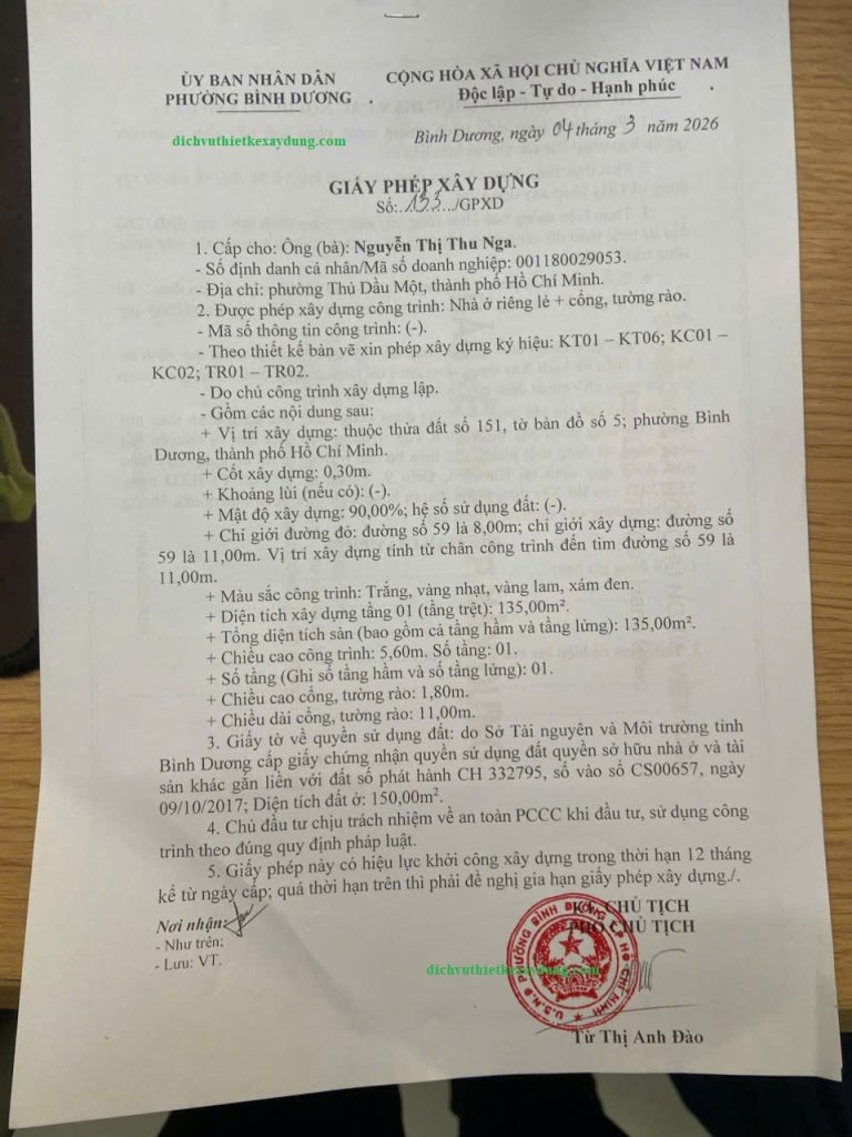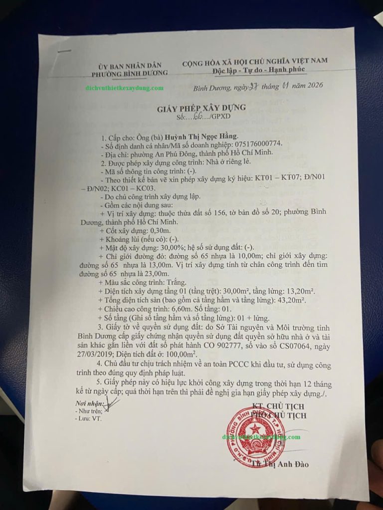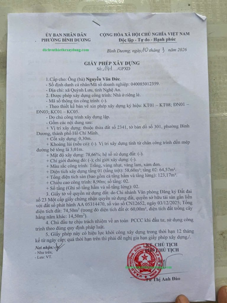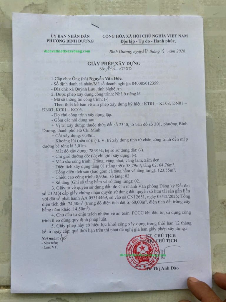 Mời bạn xem thêm : Xin Giấy Phép Xây Dựng tại khu vực Bình Dương cũ