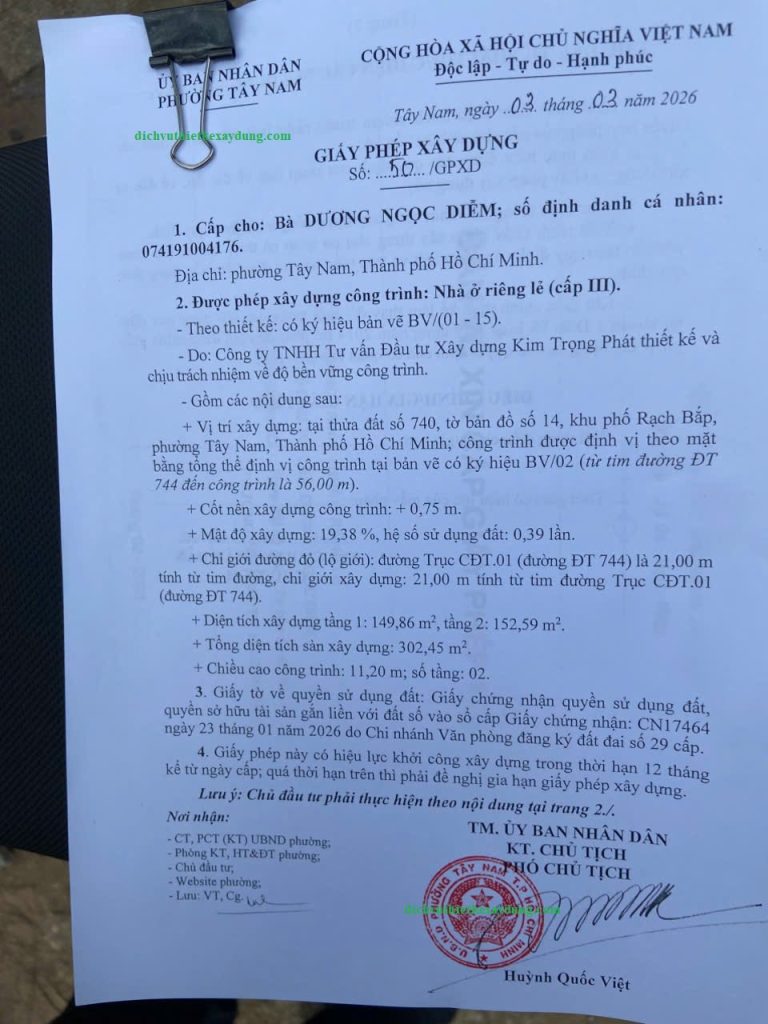Dịch vụ xin giấy phép xây dựng trọn gói tại phường Tây Nam