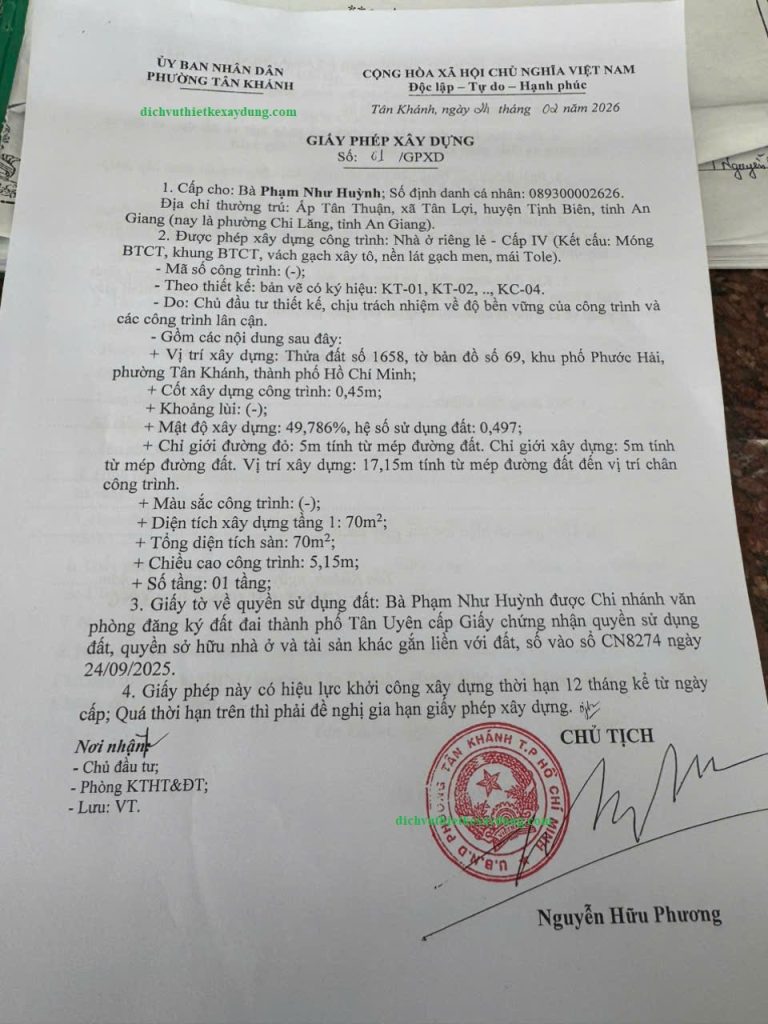 Dịch vụ xin giấy phép xây dựng trọn gói tại phường Tân Khánh