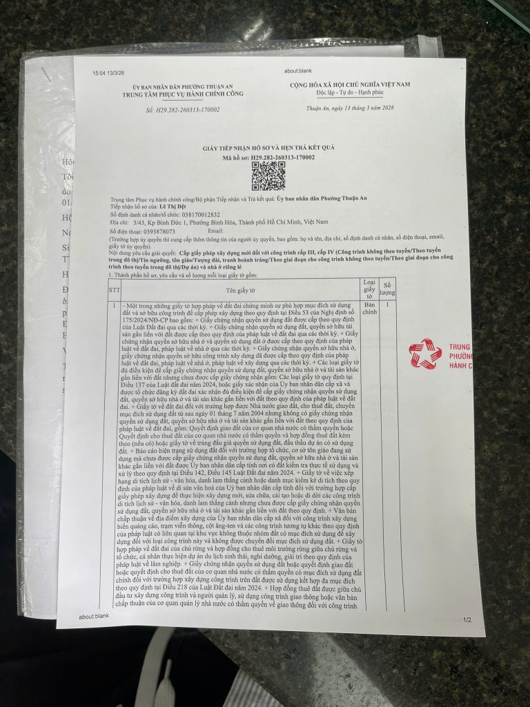 Dịch vụ xin giấy phép xây dựng trọn gói tại Phường Thới Hòa