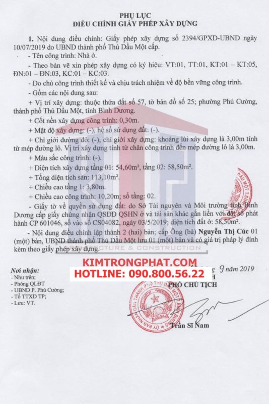 Dịch vụ điều chỉnh giấy phép xây dựng tại Bình Dương:
