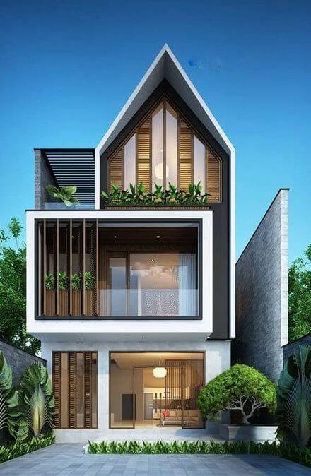 Mẫu nhà phố mái thái 2 tầng diện tích 5x20m. Có kiến trúc chủ yếu tập trung nhiều vào nét đẹp hiện đại.