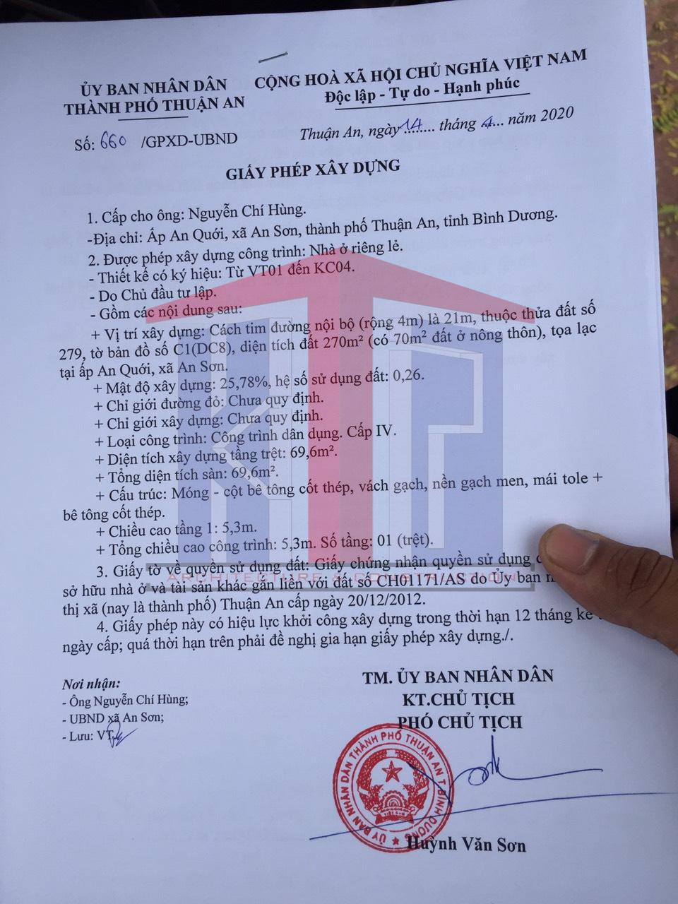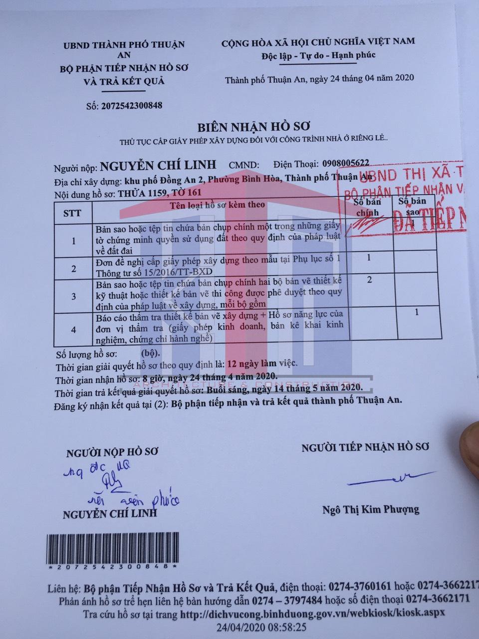 Dịch vụ xin cấp giấy phép xây dựng tại Thuận An được công ty Dịch Vụ thiết Kế Xây Dựng chúng tôi đứng ra chịu trách nhiệm hoàn thiện hồ sơ từ A-Z, quý khách chỉ cần cung cấp cho chúng tôi 02 sổ đỏ photo công chứng, 01 CMND + hộ khẩu photo công chứng, chúng tôi sẽ vẽ bản vẽ, đại diện chủ nhà đi nộp hồ sơ,  khảo sát xác minh tình trạng đất, lấy giấy phép xây dựng.